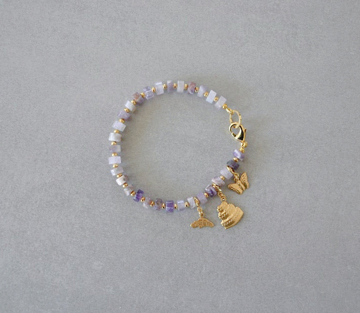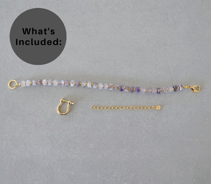 Made with amethyst beads and 18k gold plated findings with hypoallergenic, water-resistant, and tarnish-proof clear coating