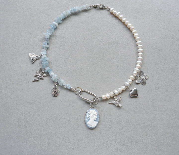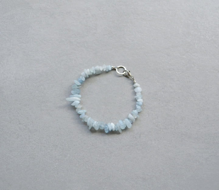 Made with aquamarine beads and rhodium plated findings with hypoallergenic, water-resistant, and tarnish-proof clear coating.