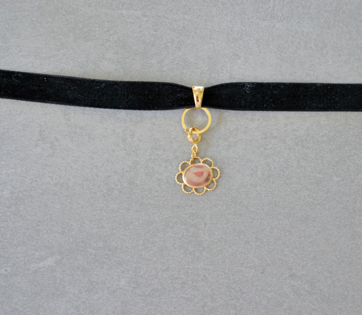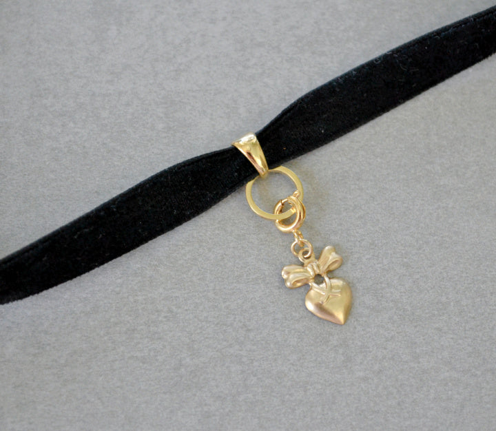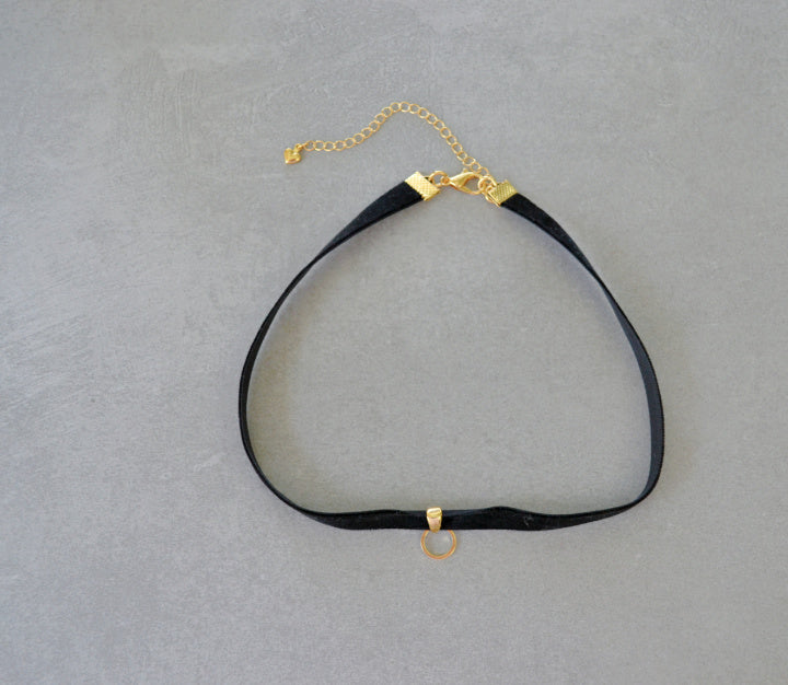 Handmade choker style necklace made with black velvet ribbon and gold plated findings. *Charms sold separately*