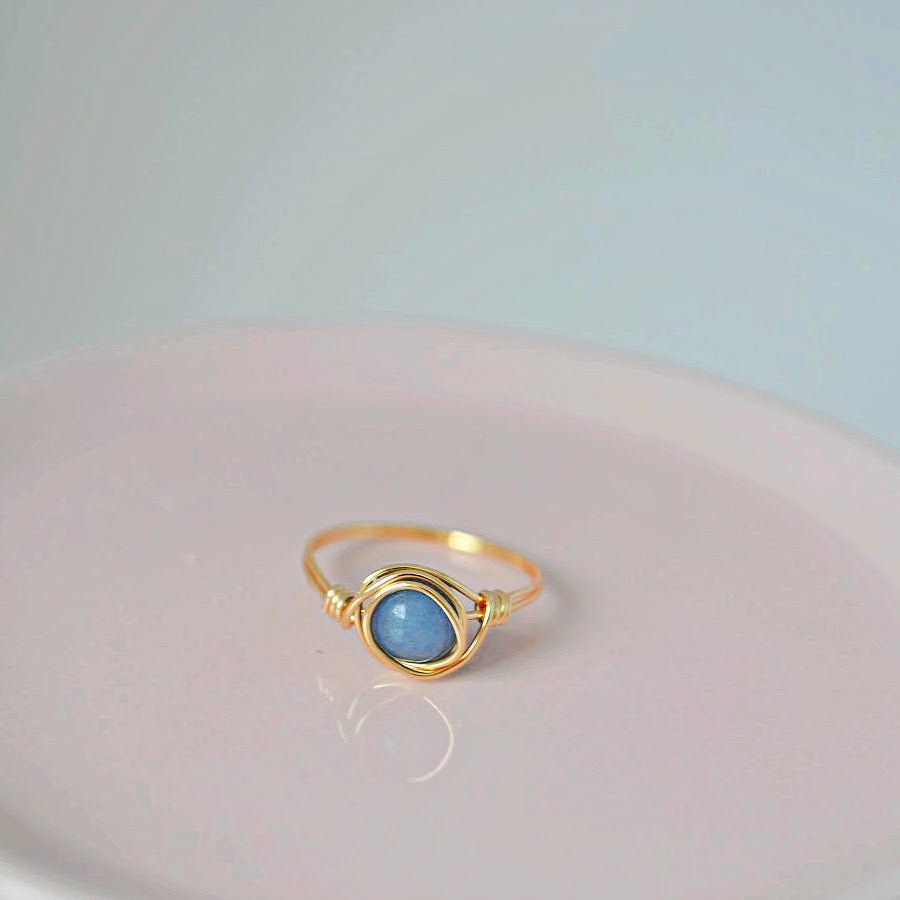 Blue Aventurine gemstone bead wrapped with gold plated anti tarnish wire