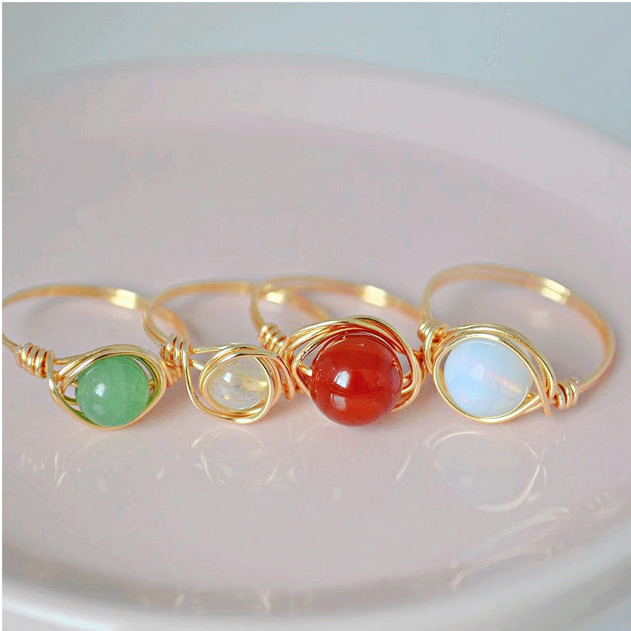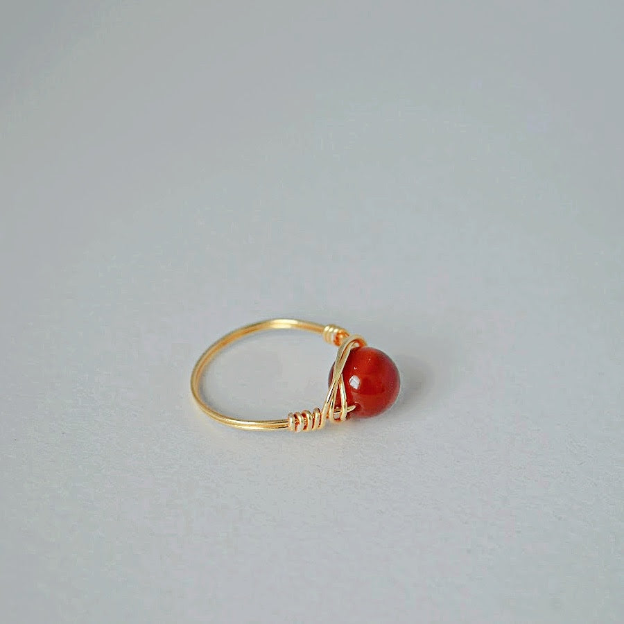 Carnelian gemstone bead wrapped with gold plated anti tarnish wire