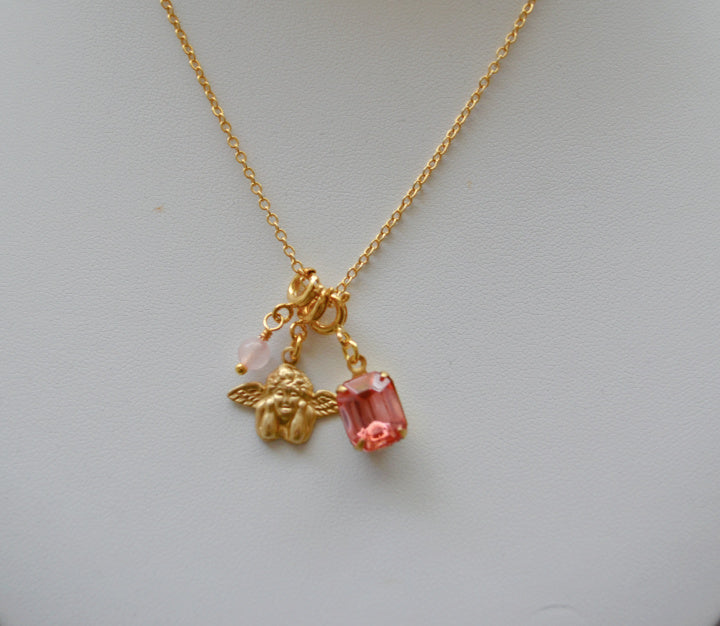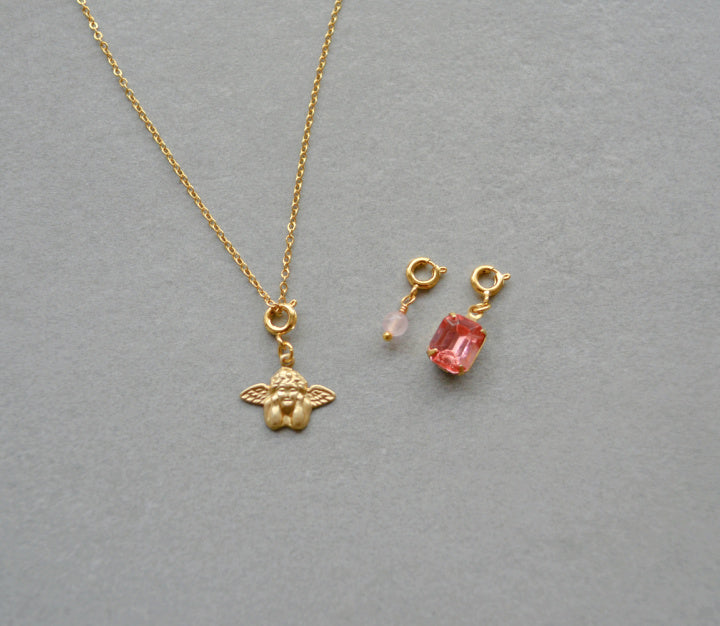 Pink Angel Charm Necklace Gift Set