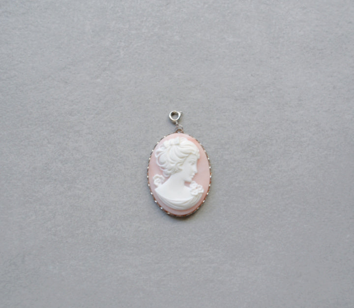XL Pink Cameo Charm • Silver Halfable