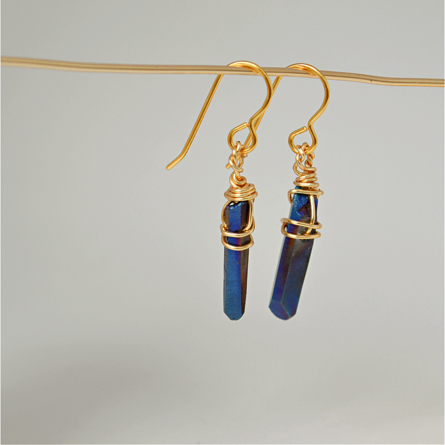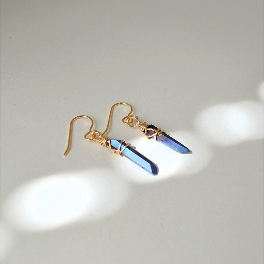 Handmade earrings made with quartz and gold plated earring hooks