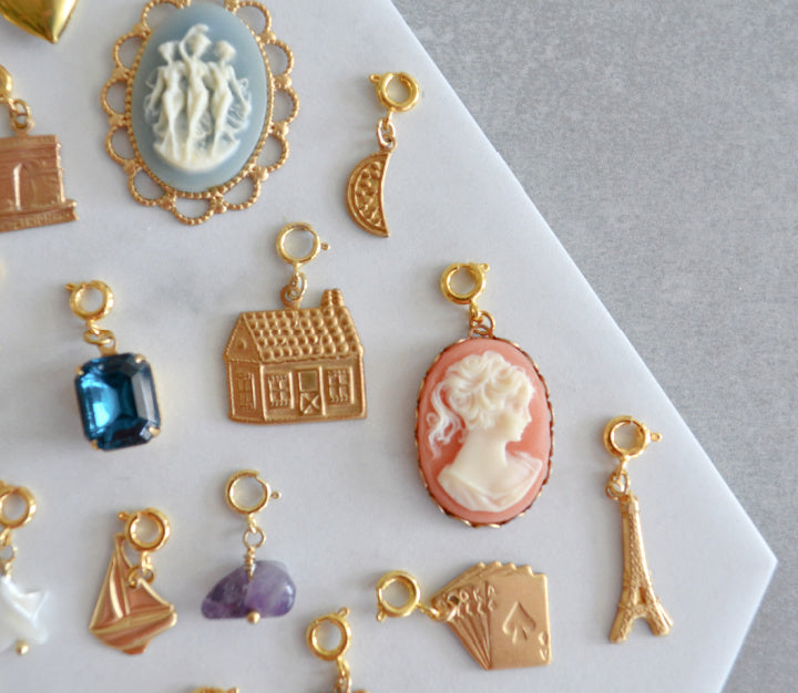 Add a touch of nostalgia to your jewelry collection with our charming selection of vintage charms. Designed to be attached to the Halfable interchangeable necklace or bracelet, these whimsical pieces bring a touch of the past to your modern look.