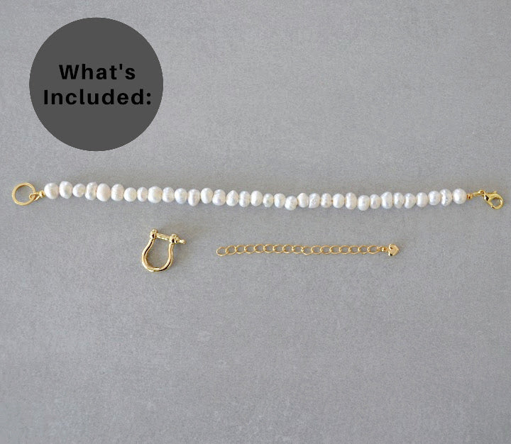 Freshwater pearl half, a screw on shackle clasp, and a removable 3 inch extender