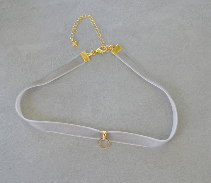 Handmade choker style necklace made with gray velvet ribbon and gold plated findings. *Charms sold separately*