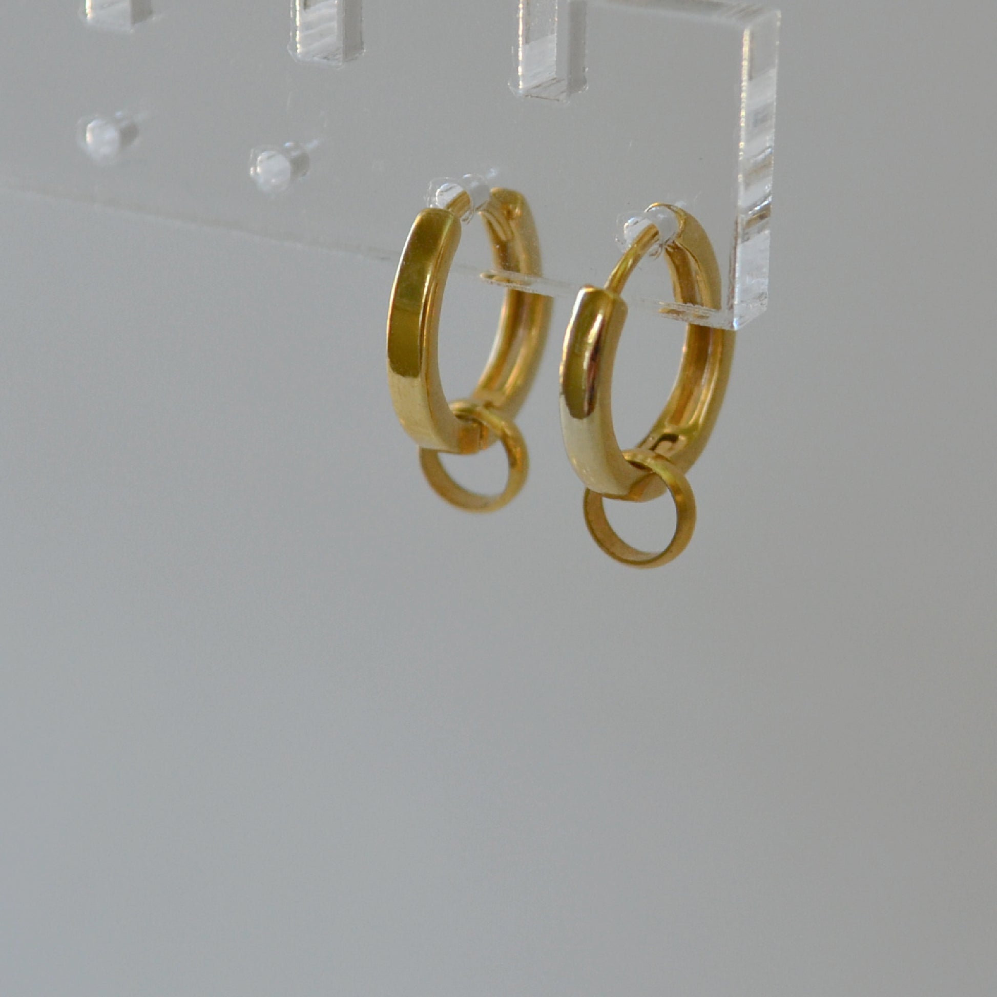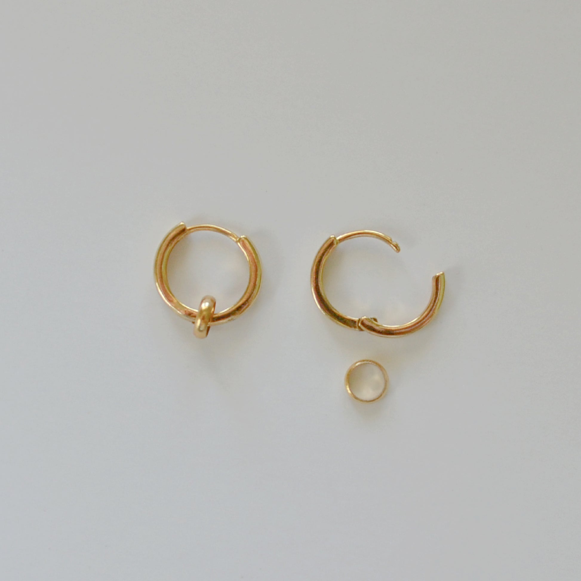 The Halfable Huggie Hoops are the newest addition to the Halfable line. Now, you can wear any of your Halfable charms on earrings by clipping them onto the removable loop. Wear your huggies on their own, clip on a single charm, or add a few to create a charm cluster. Versatile and classic, these gold huggie earrings adapt to any style or occasion.