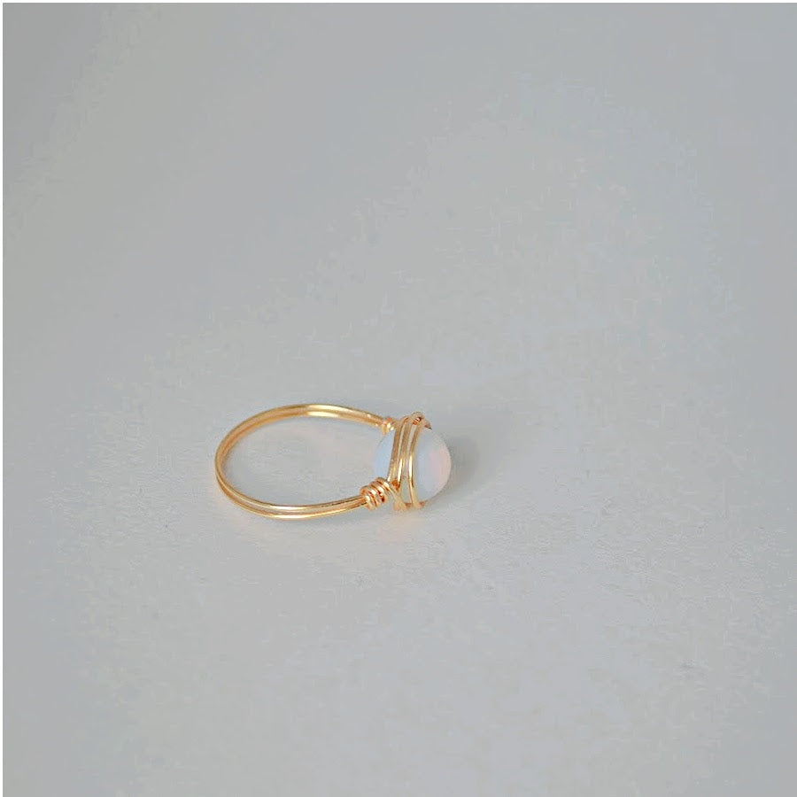 Opalite gemstone bead wrapped with gold plated anti tarnish wire