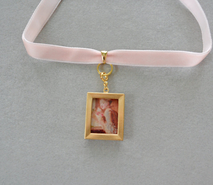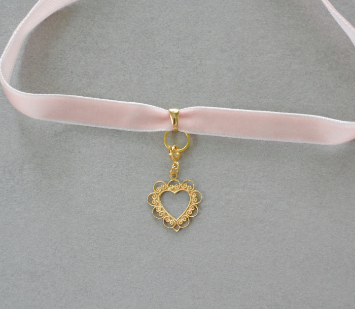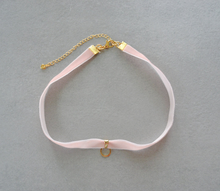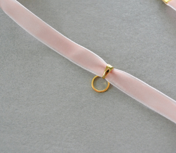 Handmade choker style necklace made with pink velvet ribbon and gold plated findings. *Charms sold separately*