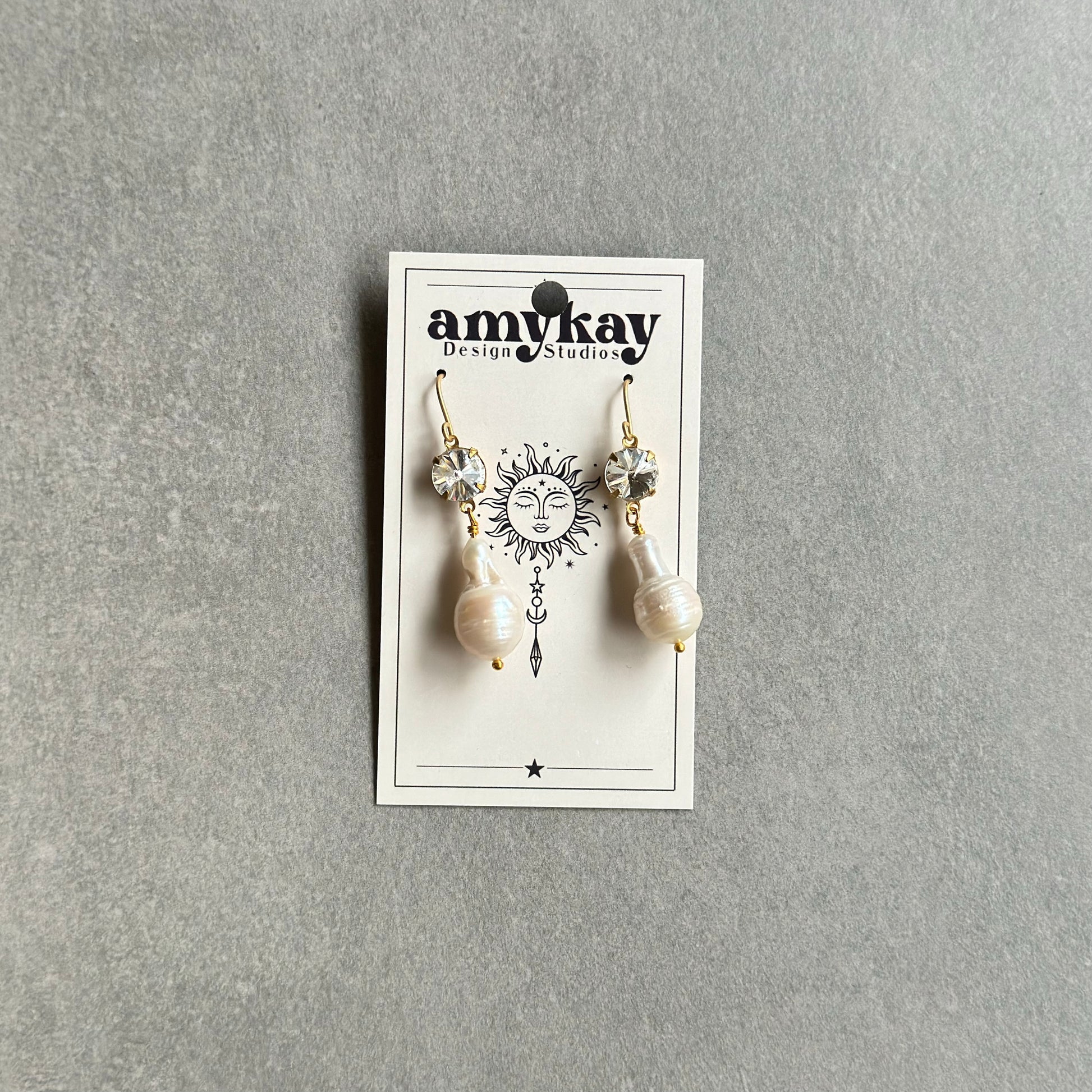Handmade earrings made with freshwater pearls, vintage clear crystals, and gold plated earring hooks