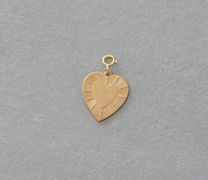 1 vintage brass starburst heart charm