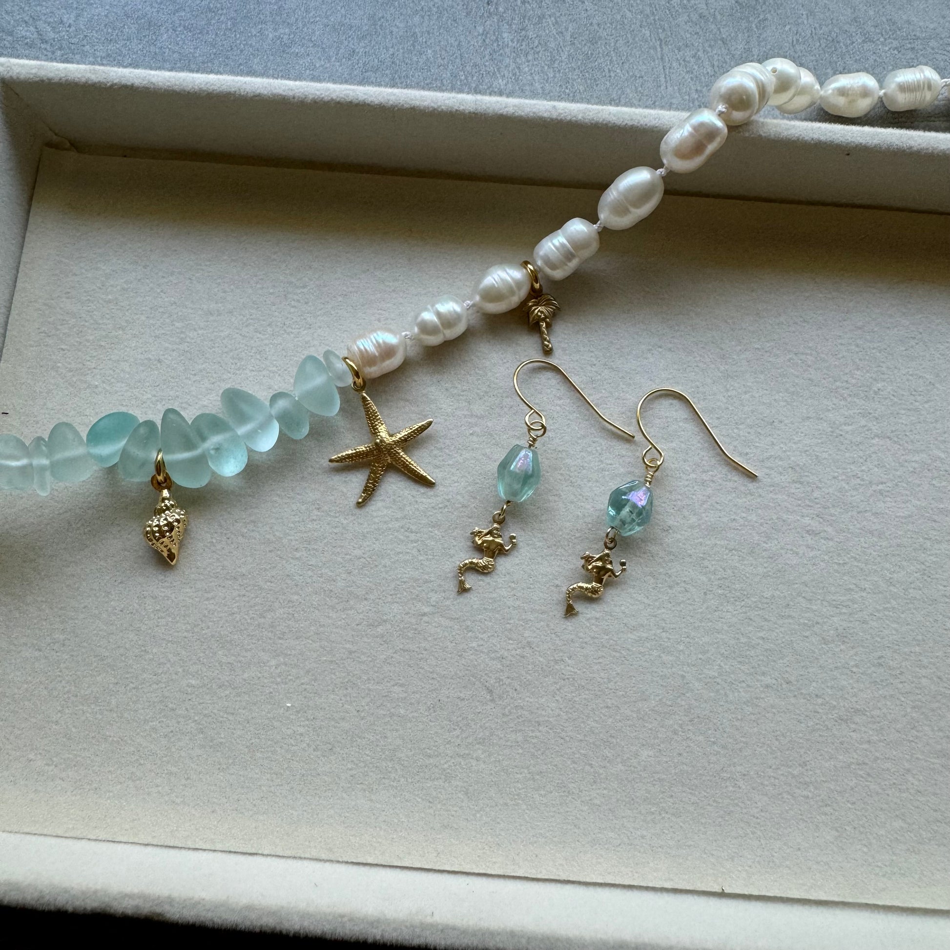 From our "That Girl" collection, each pair of earrings celebrates a different version of that girl—this one is for the mermaidcore girl. The Mermaidcore earrings are perfect for those who feel at home by the beach, with the sound of waves and the scent of salt in the air.