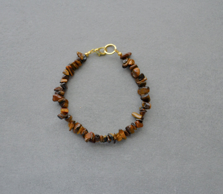 Made with tiger eye beads and 18k gold plated findings with hypoallergenic, water-resistant, and tarnish-proof clear coating