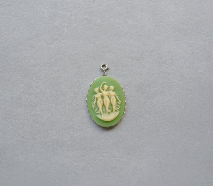 XL Dancing Fairies Green Cameo Charm • Silver Halfable